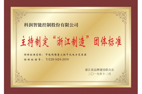 主持制定“浙江制造”团体标准